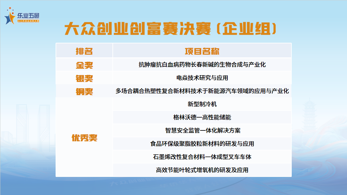 经过激烈比拼,第五届江门市“乐业五邑”创业创新大赛之大众创业创富赛决赛落下帷幕。获奖名单如下: