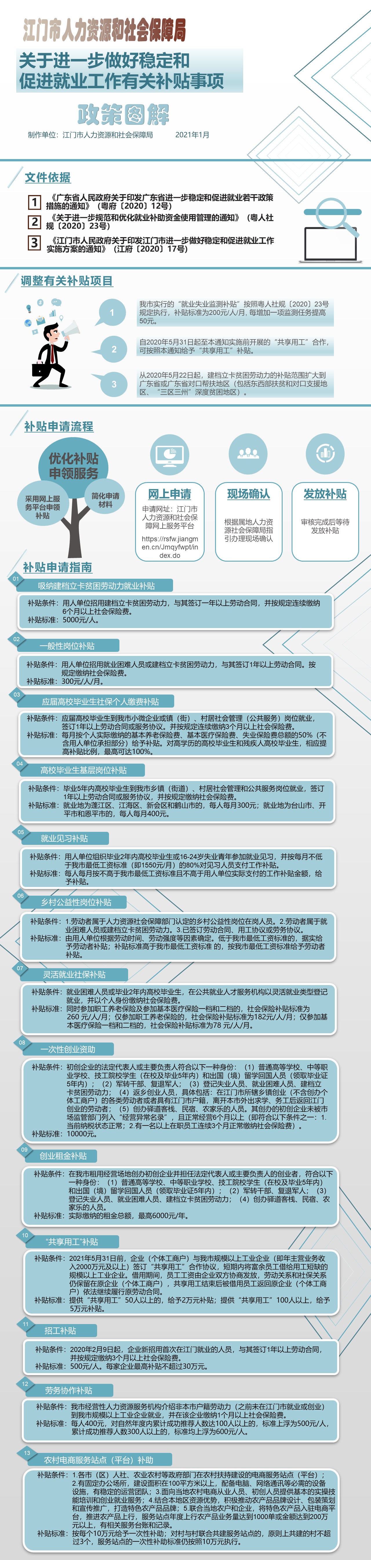 - 一图读懂《江门市人力资源和社会保障局关于进一步做好稳定和促进就业工作有关补贴事项》2021-01-18