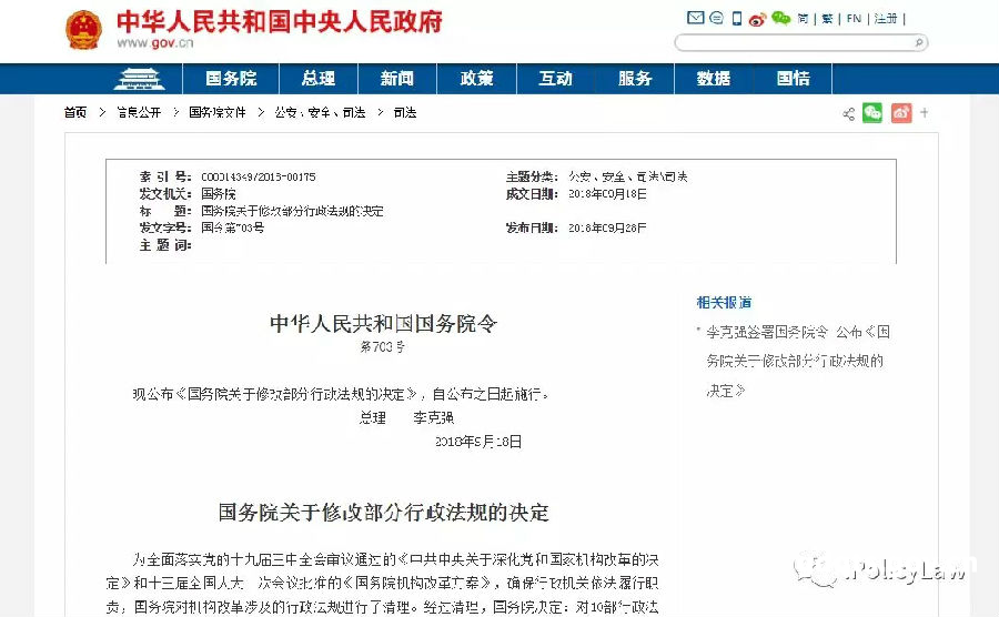 现公布《国务院关于修改部分行政法规的决定》,自公布之日起施行。