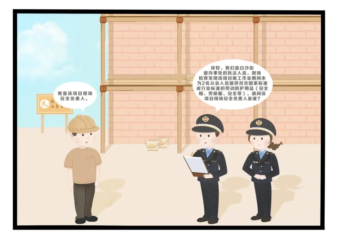 本期案例改编于白沙街道真实案例,白沙街道办事处执法人员在巡查检查企业的过程中,现场检查发现某企业在外墙翻新项目施工作业期间未为2名从业人员提供符合国家标准或行业标准的劳动防护用品(安全帽、劳保服、安全带),违反了《中华人民共和国安全生产法》第四十五条的规定,随后执法人员对该企业负责人进行安全教育宣传并向该企业发出责令整改通知书,要求在整改日期内改正。经复查,该企业已按照要求整改完毕,鉴于按时完成整改并主动上报有关材料,整改期间未发生生产安全事故(包括轻伤),且未被举报投诉,违法行为属于从轻处罚裁量档次,依法对其从轻处罚。