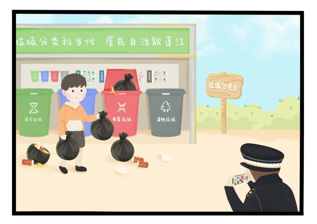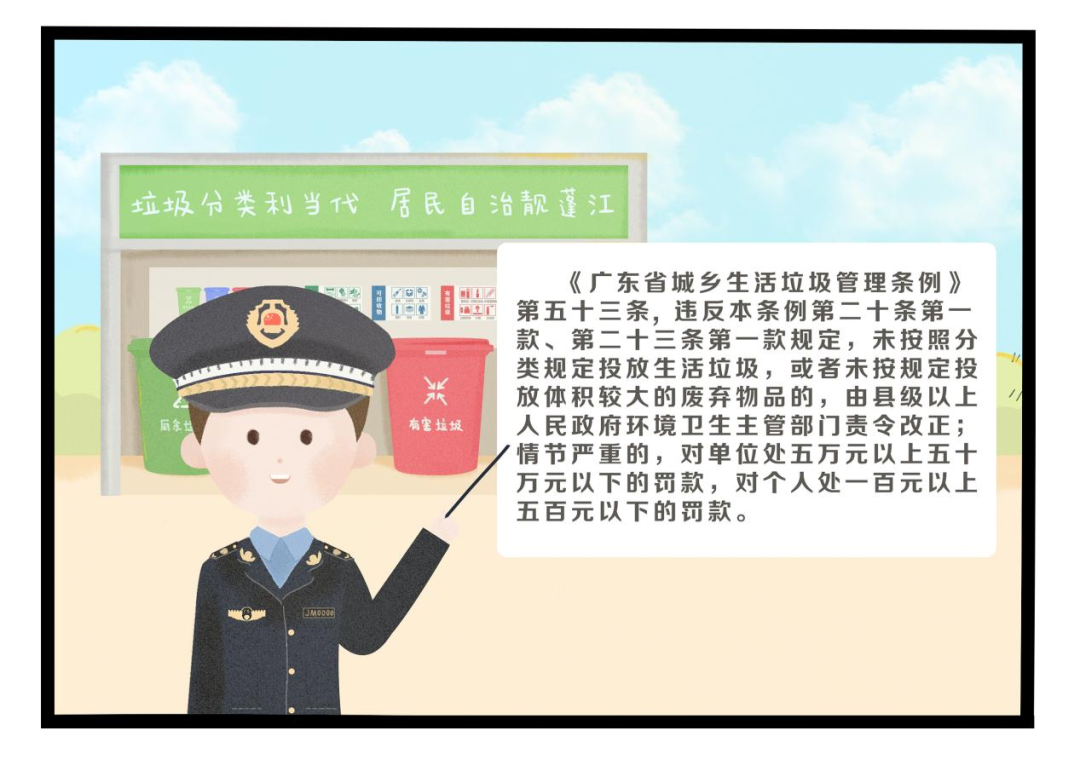 随着经济社会发展和物质消费水平大幅提高,我国垃圾产生量迅速增长,不仅造成资源浪费,也使环境隐患日益突出,成为经济社会持续健康发展的制约因素、人民群众反映强烈的突出问题,因此实行垃圾分类,关系广大人民群众生活环境,关系节约使用资源,也是社会文明水平的一个重要体现。目前部分居民对垃圾分类仍然重视不够,部分分类垃圾桶“形同虚设”。绿色环保生活是我们的共同期待的,若单位或个人没有严格按照规定投放垃圾,将要承担相应的法律责任。下面我们以通俗易懂的漫画形式以案说法: