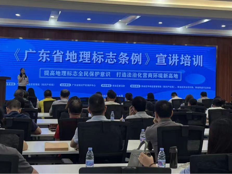 法律的效力在于实施。为深入推进地理标志的使用与保护,省政府立法基层联系点江门市新会区新会陈皮行业协会协助广东省知识产权保护中心举办《广东省地理标志条例》宣讲培训(新会站)活动。培训内容结合新会陈皮产业实际和企业发展需求,直击地理标志工作的堵点、难点、痛点进行授课,对提升行业的知识产权保护意识发挥了积极作用。