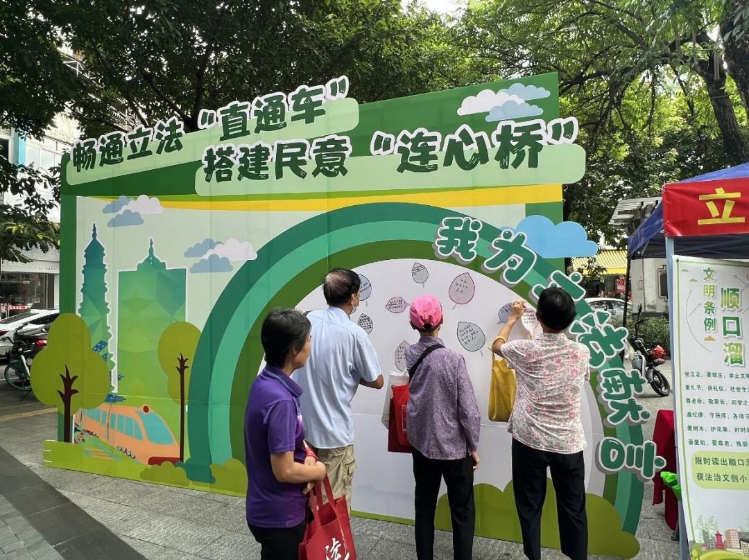 让全社会形成尊法、学法、守法、用法的良好氛围,法治宣传尤为重要。市政府立法基层联系点新会区会城街道南园社区居民委员会的“法律讲堂”“我为立法献言”等活动开展得有声有色。南园社区邀请律师为社区居民解读《江门市文明行为促进条例》重点内容,提供法律咨询,将法律知识、法治观念普及到街头巷尾。社区工作人员走上街头,向群众发放宣传资料,积极与商家、社区居民互动交流,宣讲法律与听取民意齐头并进。居民群众“沉浸式”参与立法征询,踊跃为立法献言,征集意见板上一片片承载民意的叶子被贴上,代表来自基层一线的鲜活声音也在源源不断汇集到立法机关。