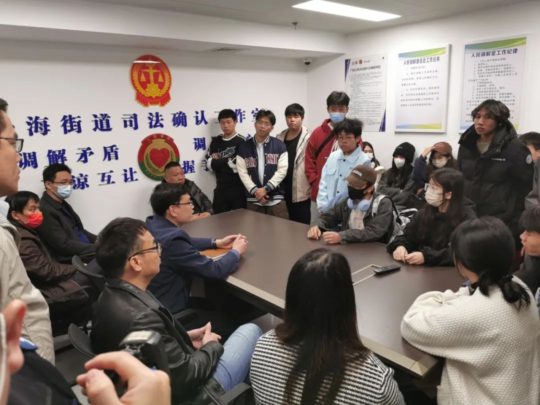 (图为外海司法所与区法院、社区网格员、外海综治中心调解某楼盘的交付纠纷)