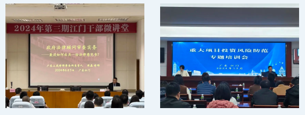 为深入学习贯彻习近平法治思想,贯彻落实吴晓晖市长关于加大法律人才培养力度,定期开展案例解析式培训的批示要求,以“现场授课+视频直播”方式先后举办全市重大涉法事项合法性审查、重大项目投资风险防范专题培训,全市三级党政机关负责法制工作的业务骨干及公职律师、外聘法律顾问、国企法务人员共2240人参训。