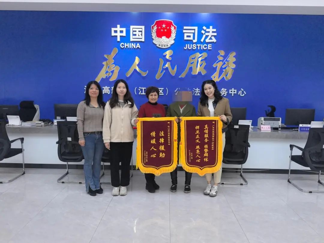 “谢谢你们对我的帮助,如果不是你们,我现在都没办法拿回属于我的赔偿。”2025年1月23日,江门市江海区法律援助中心发生了一幕温馨而感人的场景。受援人邹女士手捧两面鲜艳的锦旗,满怀感激用颤抖的双手将锦旗送到江海区法律援助中心和广东华南律师事务所邱怡飘律师手中。这两面锦旗,是对江海区法援处和法援律师无私帮助以及专业援助的最高褒奖。