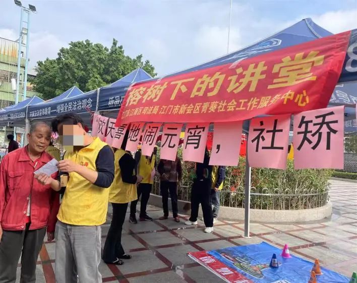 元宵佳节来临之际,为提高辖区内社区矫正对象法治意识及社会责任感,江海区社区矫正管理局组织社区矫正对象在麻三公园榕树下化身为“普法志愿者”,与社区居民一起“闹”元宵,将法治宣传融入传统节日,为节日增添了别样的法治色彩。