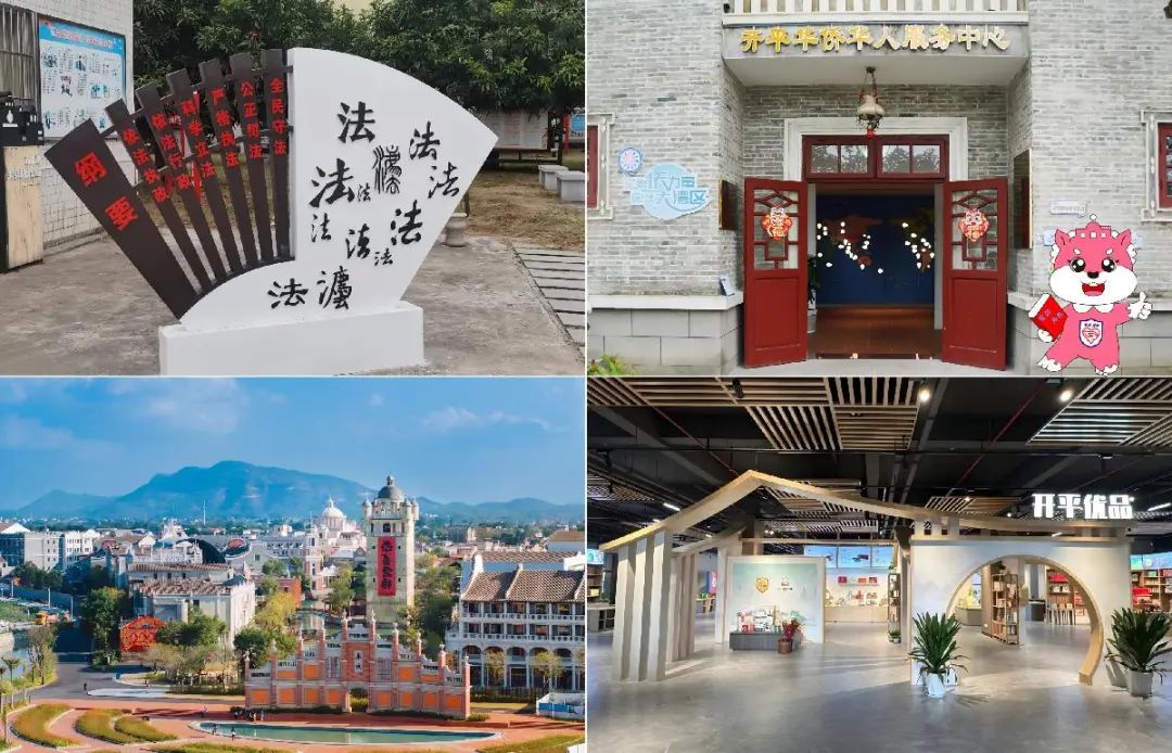 开平市赤坎镇,是广东省“百千万工程”首批典型镇、广东省乡村治理示范镇。赤坎镇中股村建有全市首个正式挂牌的村级法治文化公园——中股法治文化公园,园内创新打造“法治+健康”主题普法模式,是村民学习法律知识和健康常识的重要载体。赤坎·广东华侨国际旅游度假区拥有全国规模最大、界面最连续、保存最完整的侨乡骑楼建筑群。设立于古镇内的开平华侨华人服务中心,是集政治引领、联谊交流、为侨服务、侨法宣传于一体的华侨华人、港澳台同胞综合性服务平台,是“司+侨”的重要服务阵地。位于赤坎镇的开平优品城,是开平市首个集合了“1+8”行政区品牌全矩阵产品的展销平台,百余种本土特色产品都能在此实现“一站式”选购。