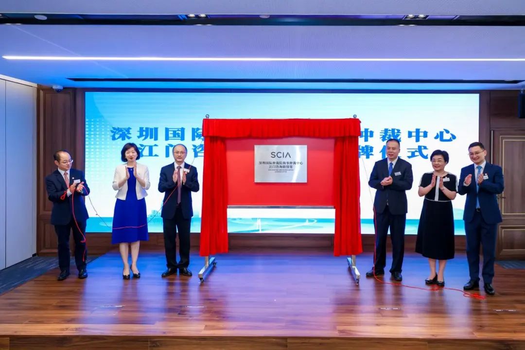 (图为:深国仲海事仲裁中心江门咨询联络处揭牌)