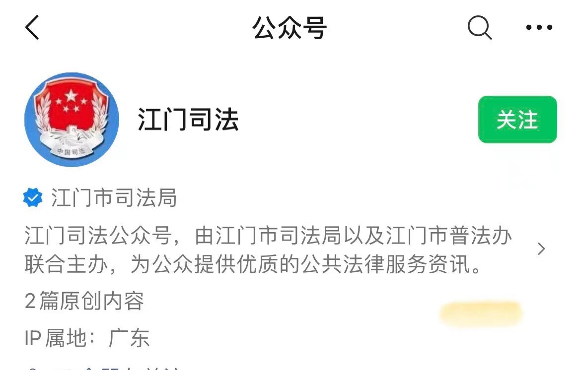 第一步:点击关注“江门司法”公众号
