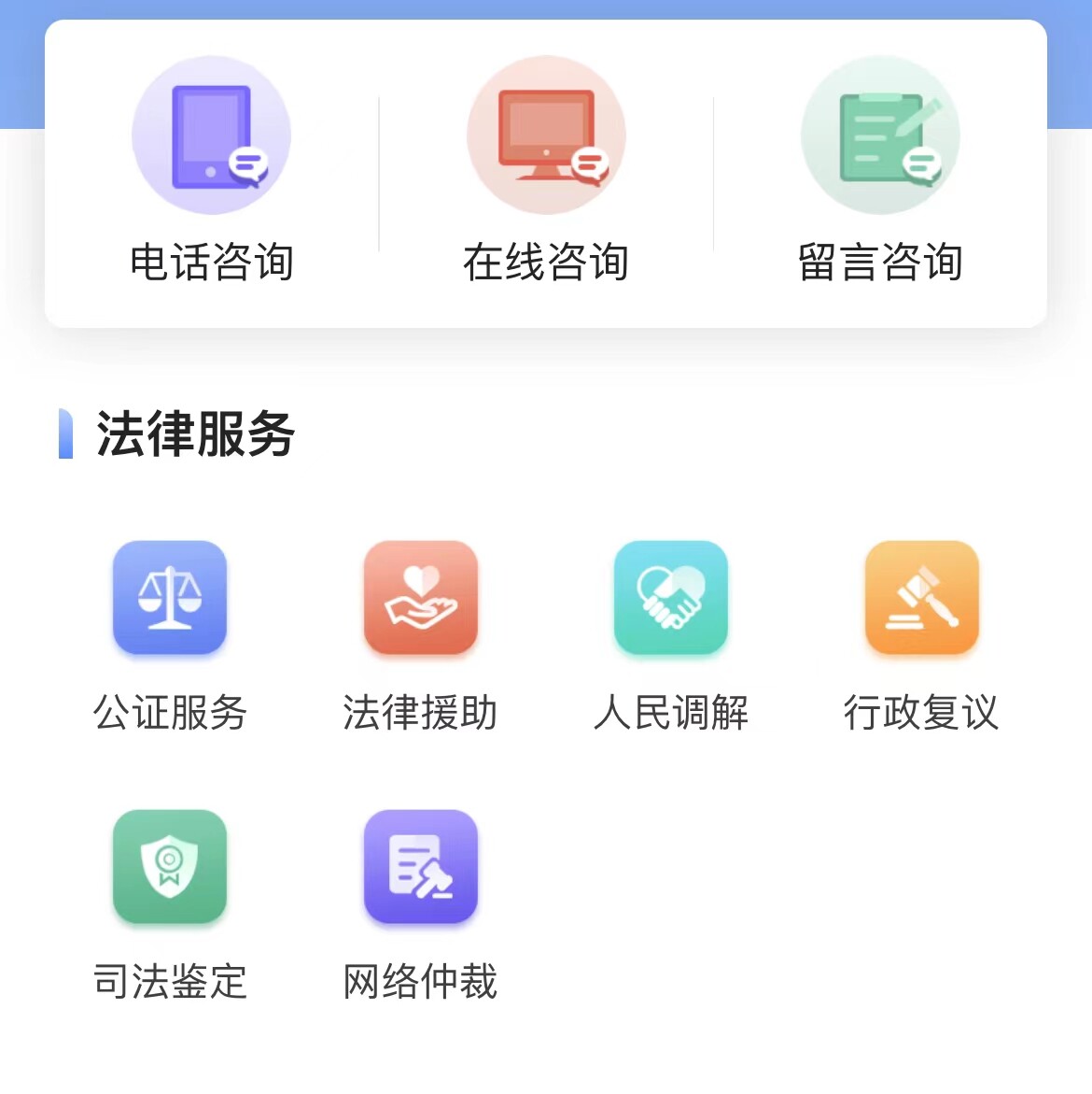 第三步:选择“法律服务”中的“行政复议”