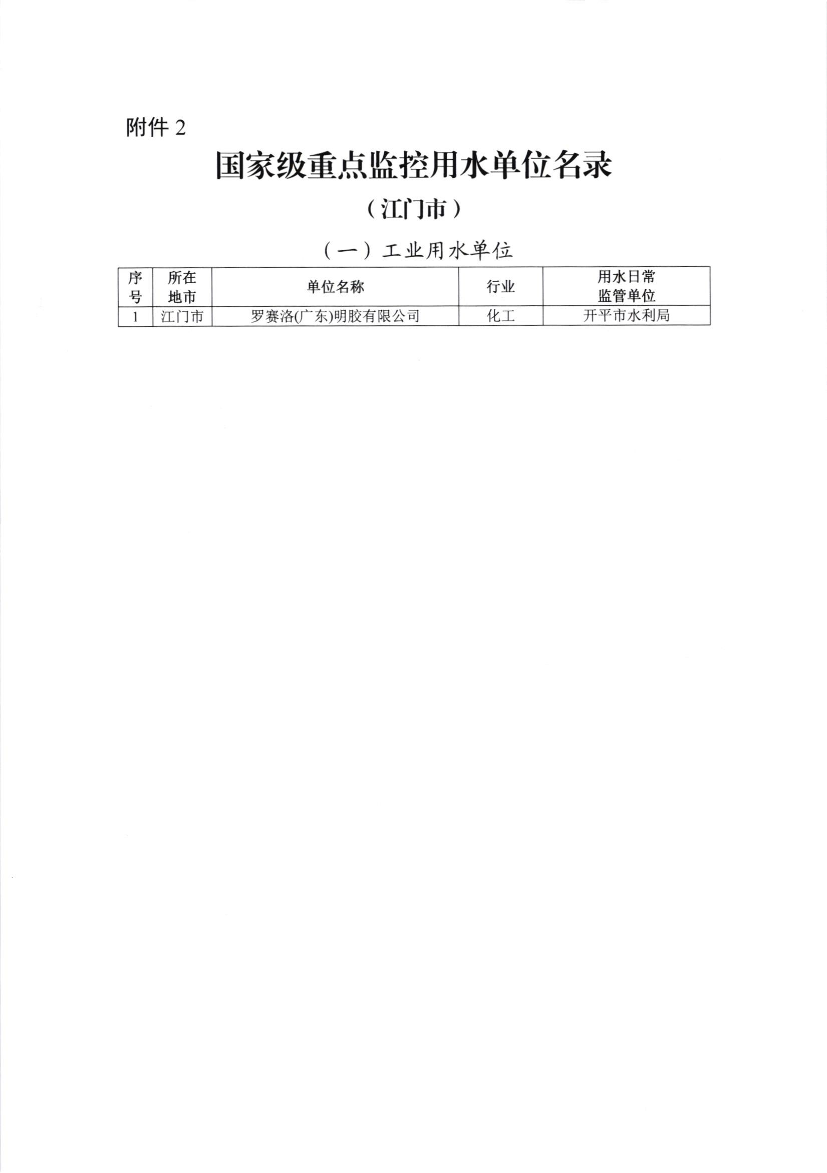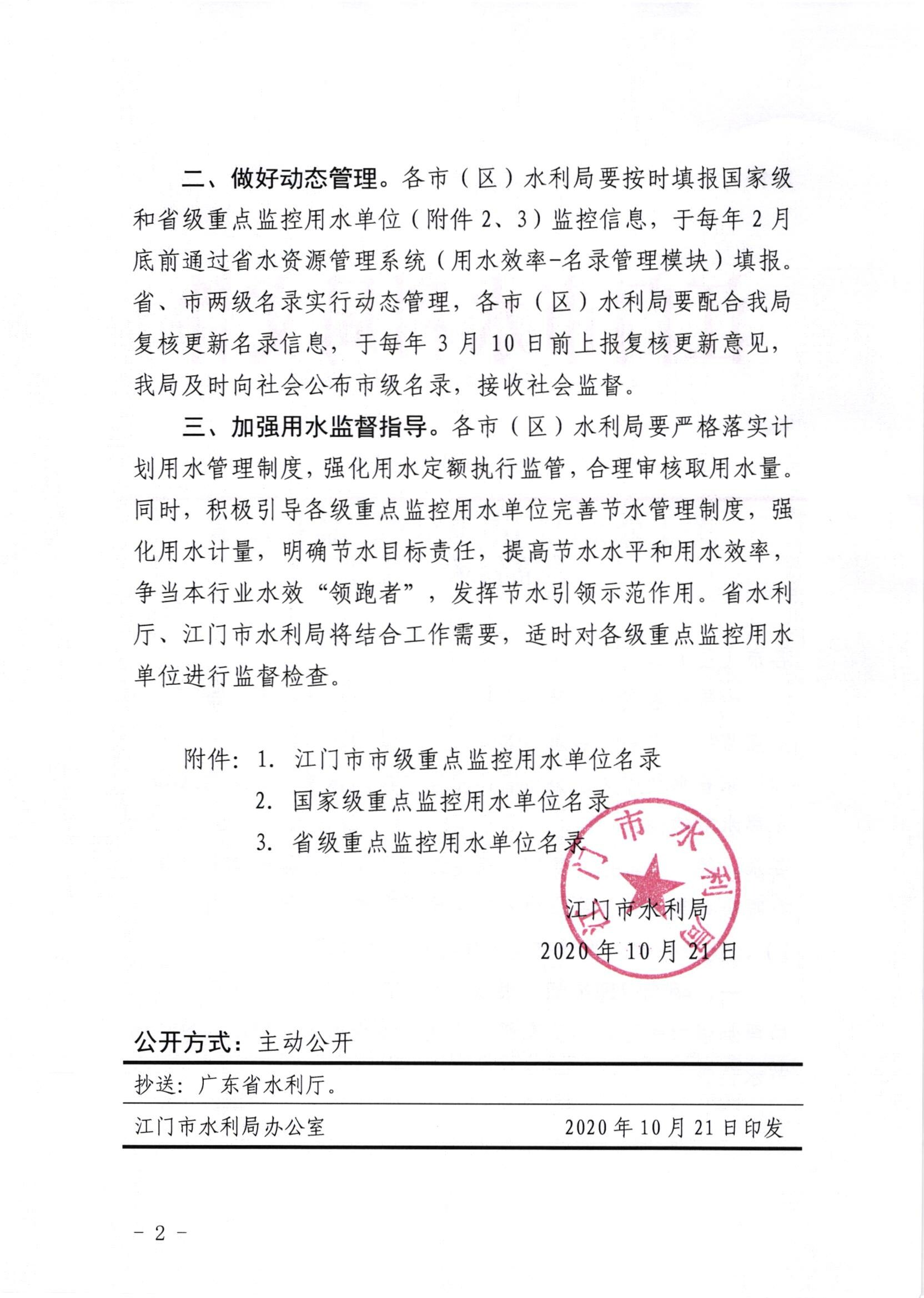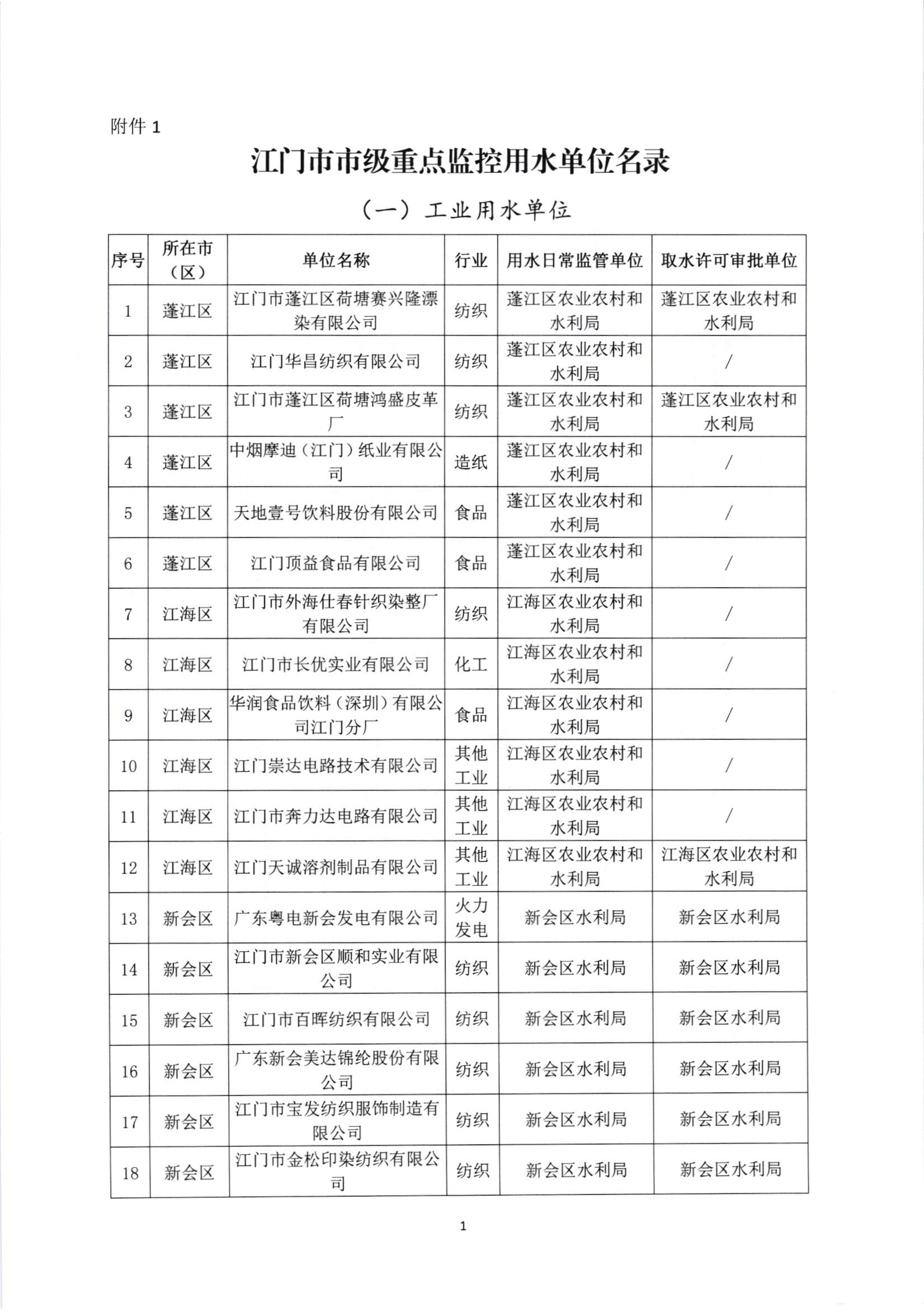 关于公布江门市市级重点监控用水名录的通知