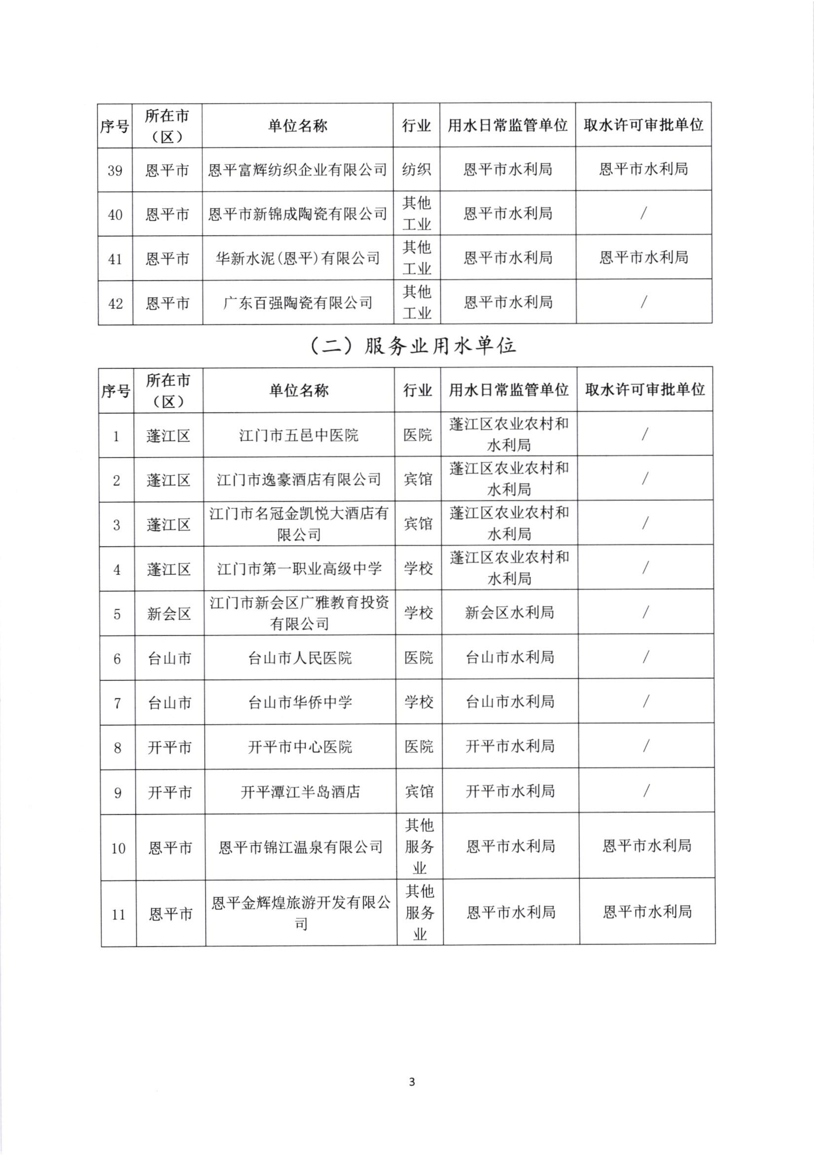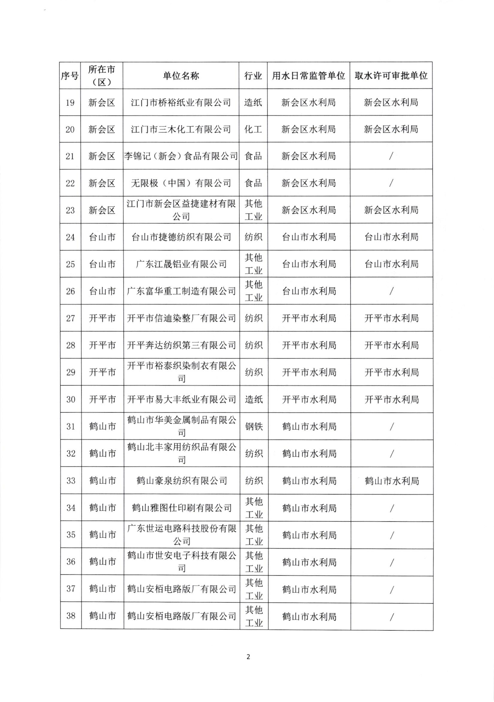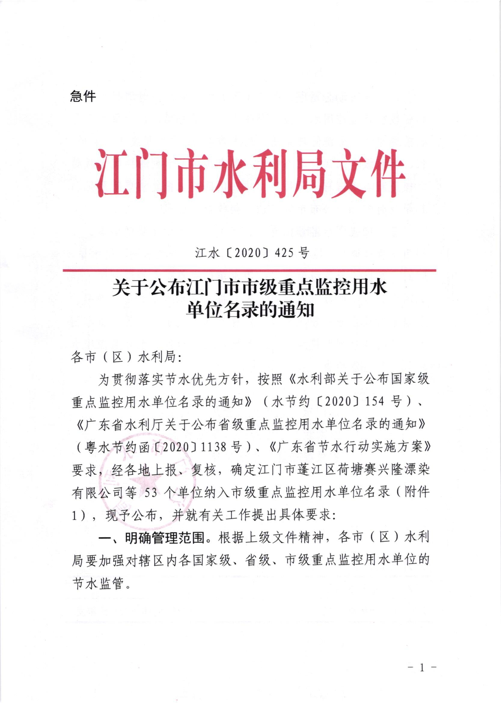 关于公布江门市市级重点监控用水名录的通知
