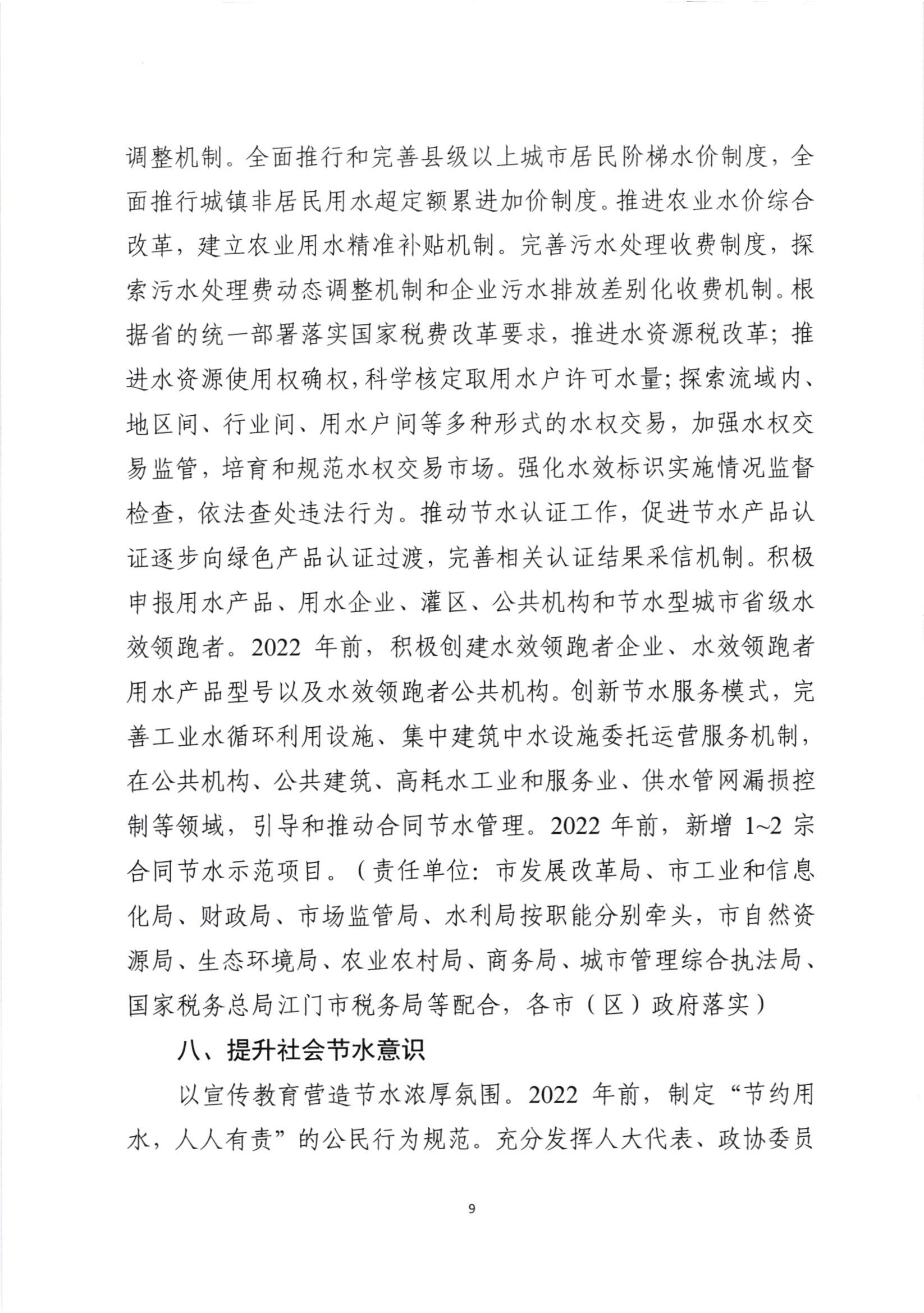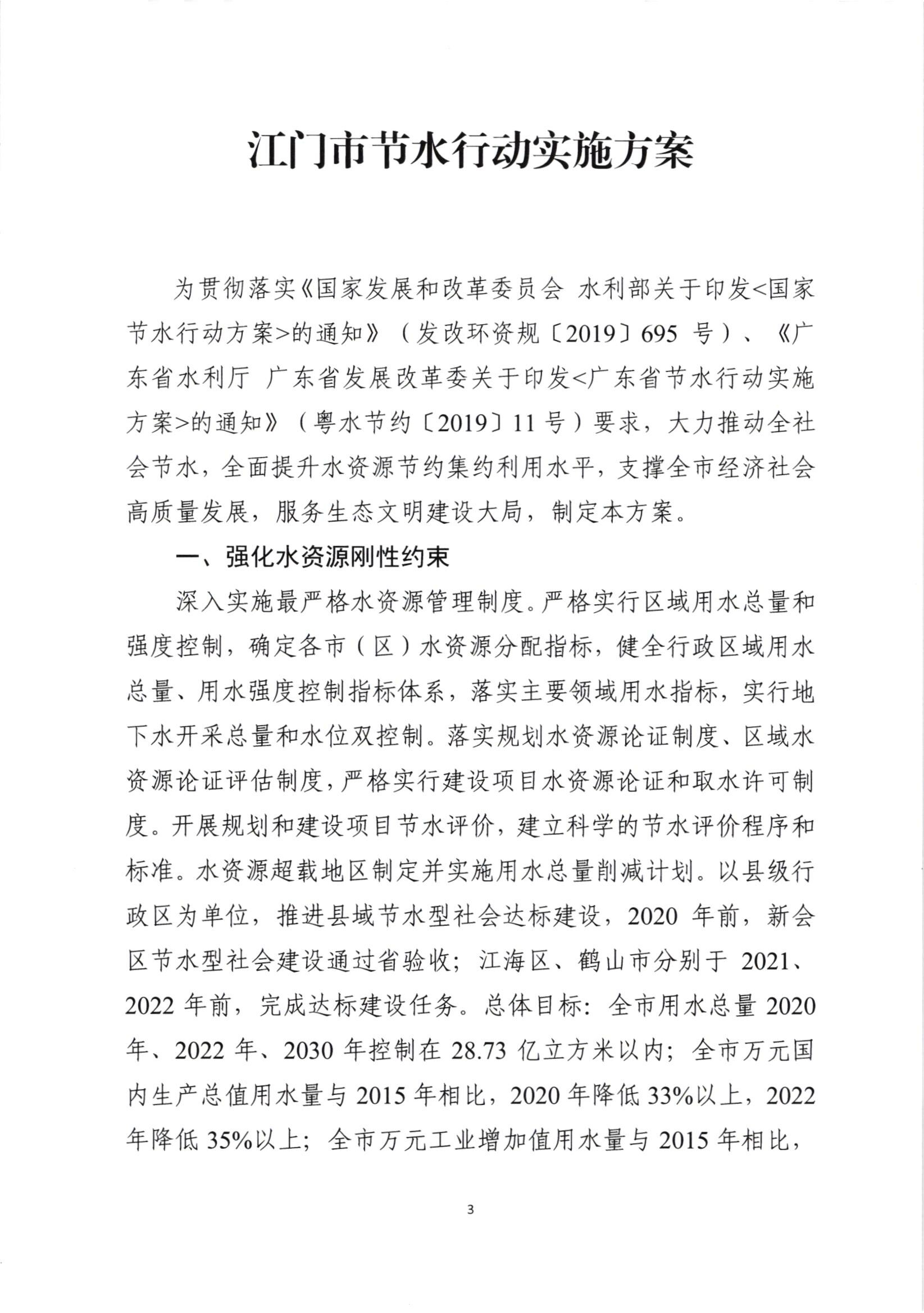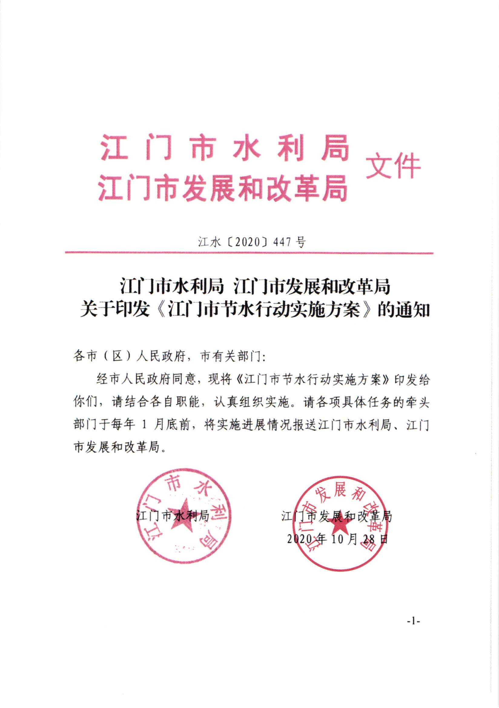 江门市水利局 江门市发展和改革局 关于印发《江门市节水行动实施方案》的通知