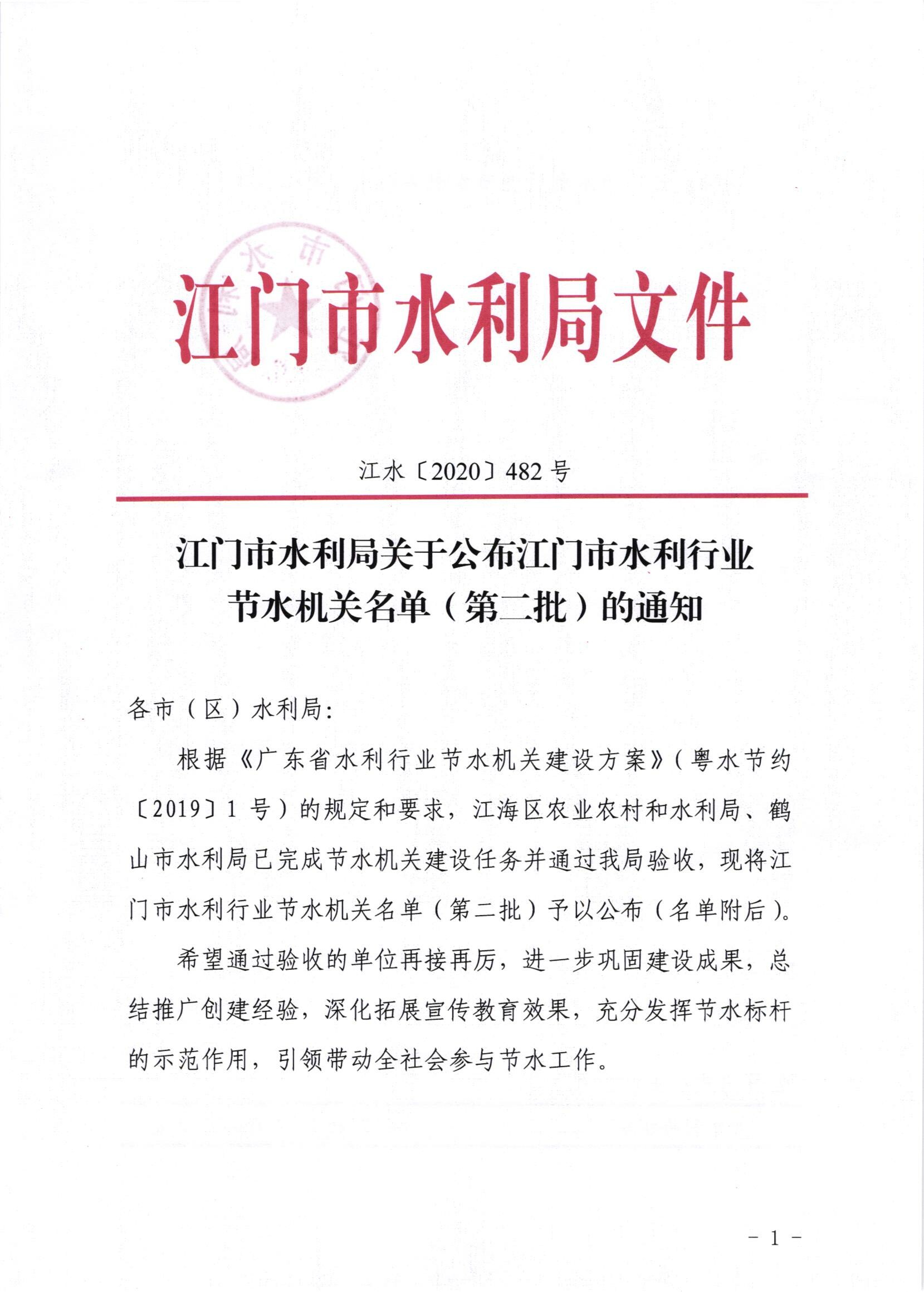 江门水利局关于公布江门市水利行业节水机关名单(第二批)的通知