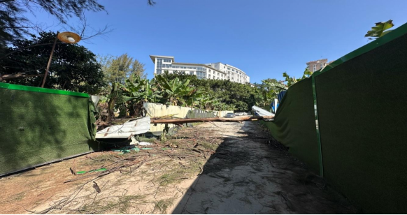 受台风天气及持续强降雨影响,蓬江区发展大道与建设路交叉口东南角地块南侧部分围挡出现倾斜、倒塌及损坏情况。为及时消除隐患、保障周边行人和车辆通行安全、维护城市环境整洁,我中心迅速响应,对该地块南侧围挡开展加固整理工作。经过努力,施工方已完成场地内垃圾、瓦砾的清运工作,并对破损围挡实施了临时性修复。