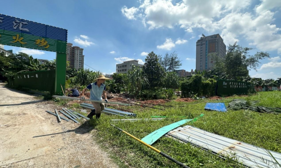 受台风天气及持续强降雨影响,蓬江区发展大道与建设路交叉口东南角地块南侧部分围挡出现倾斜、倒塌及损坏情况。为及时消除隐患、保障周边行人和车辆通行安全、维护城市环境整洁,我中心迅速响应,对该地块南侧围挡开展加固整理工作。经过努力,施工方已完成场地内垃圾、瓦砾的清运工作,并对破损围挡实施了临时性修复。