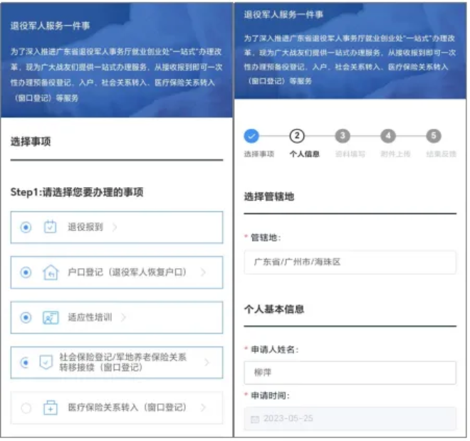 广东省退役军人服务一件事。