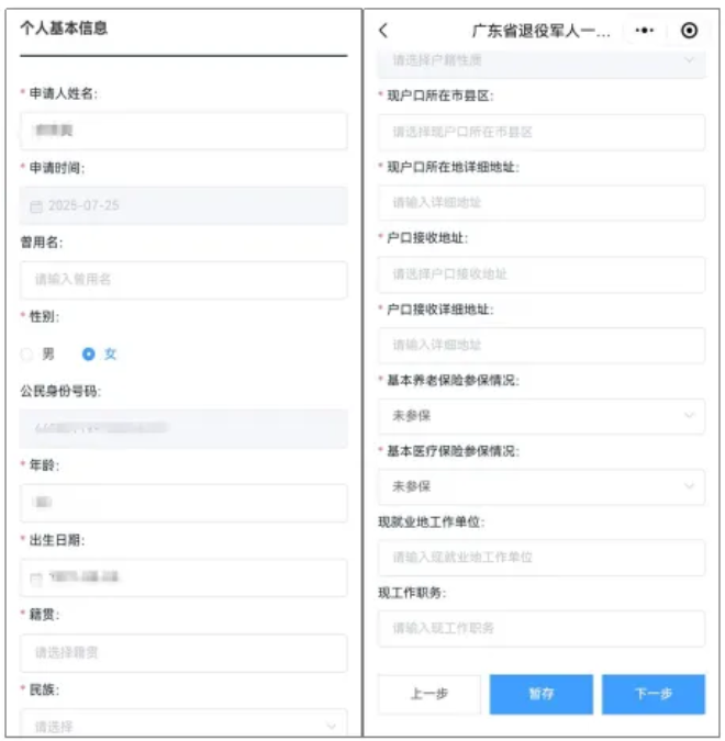 (1)个人信息填写:填写个人基本信息。