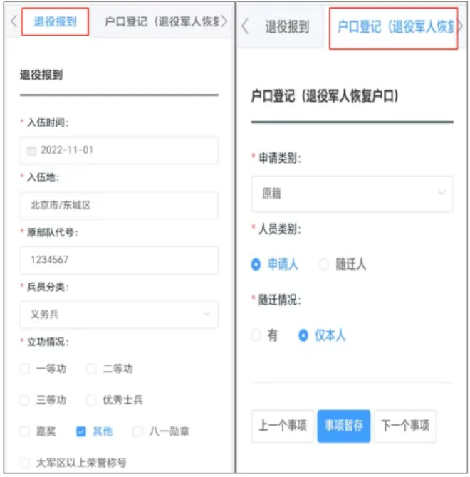 2.户口登记(退役军人恢复户口);