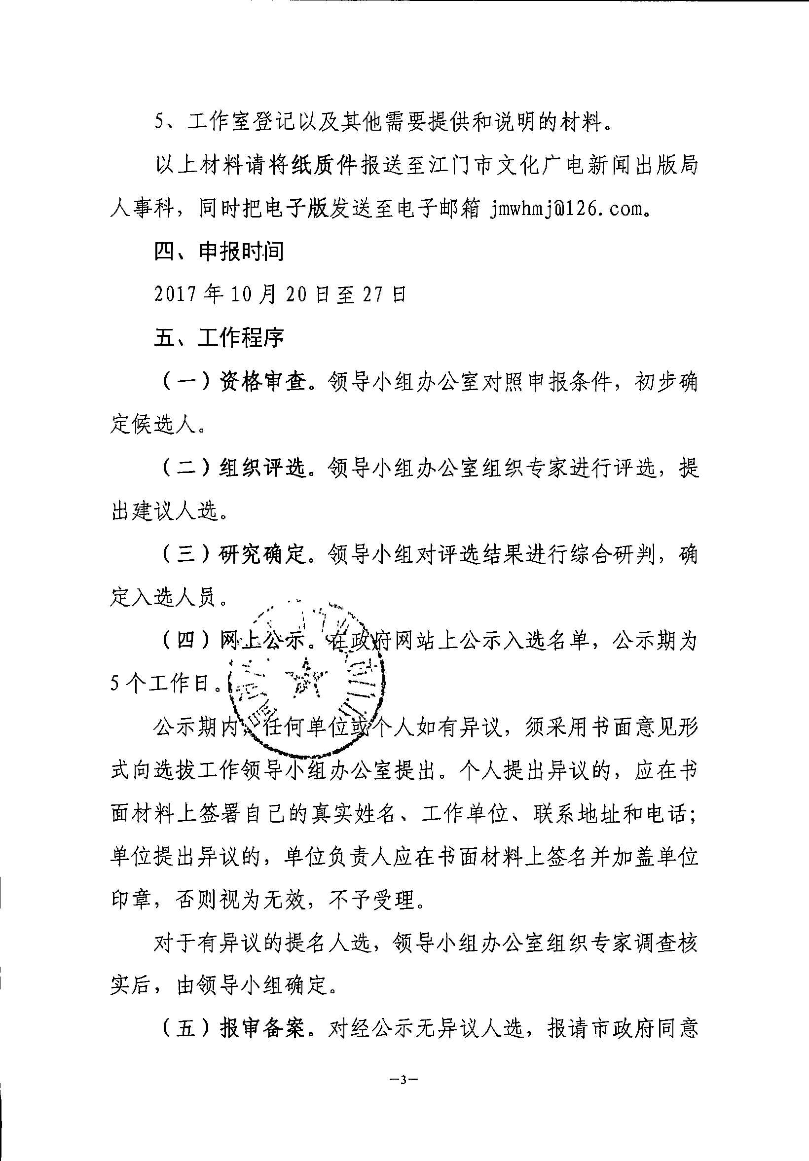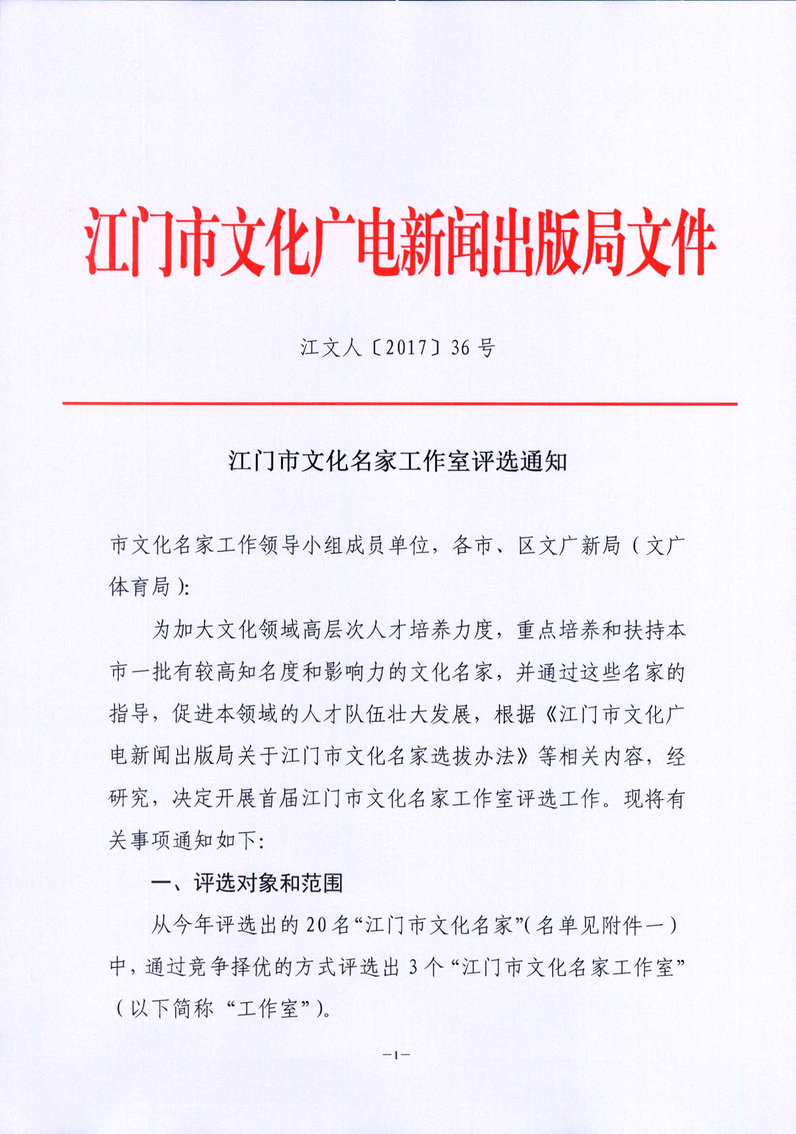 【文件】江门市文化名家工作室评选通知(江文人〔2017〕36号)