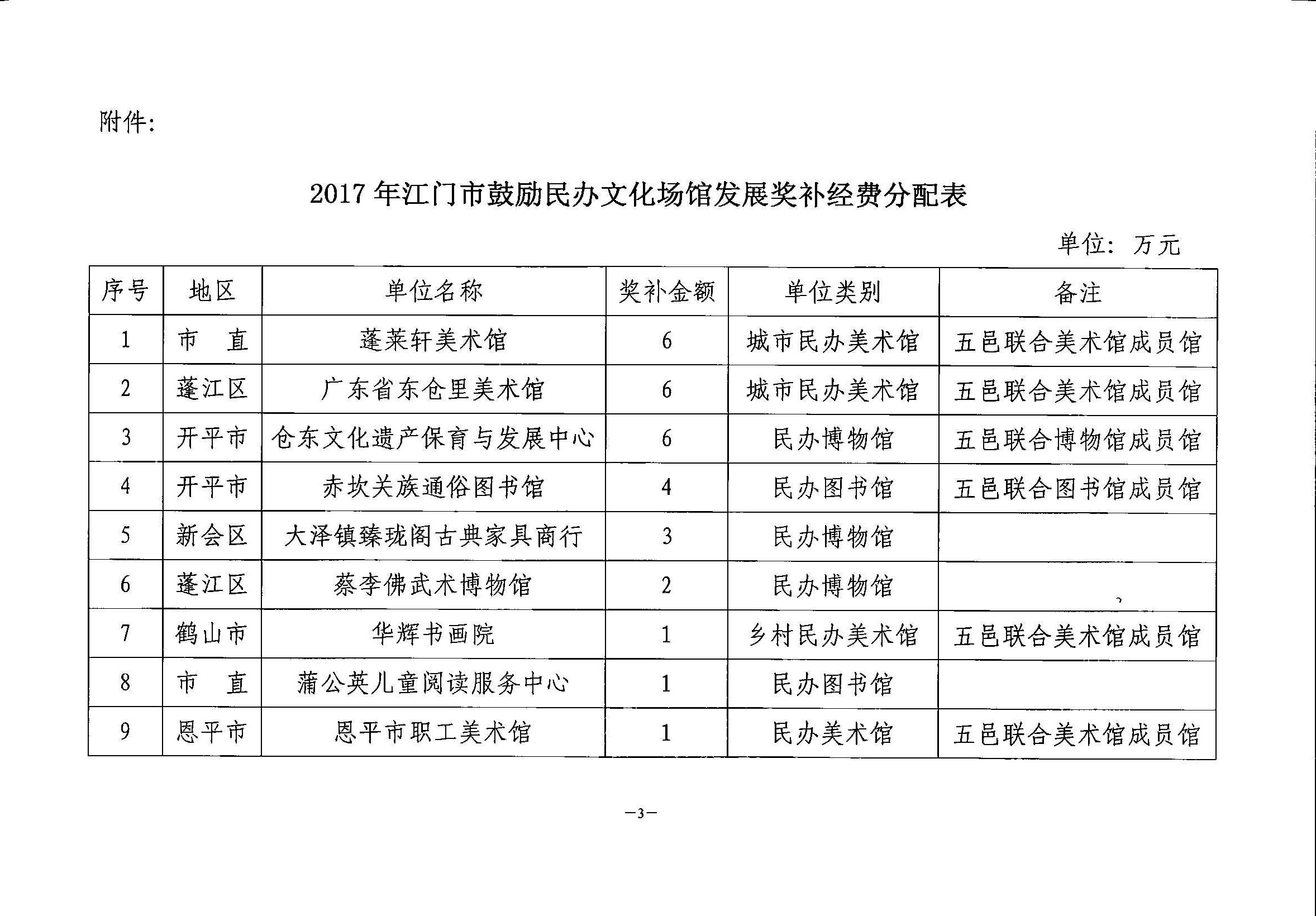 【文件】关于下达2017年度市鼓励民办文化场馆发展奖补经费的通知(江文艺〔2017〕122号)
