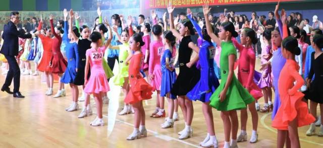 广东省体育舞蹈运动协会执行副会长刘晶,江门市文化广电旅游体育局群众体育科科长司徒赐强、江门市老干部大学常务副校长周振念,江门市体育场馆管理中心副主任刘伟洪,江门市体育舞蹈运动协会会长陈雪意、江门市体育舞蹈运动协会荣誉会长黄慧清出席本次比赛开幕式。刘晶副会长宣布比赛开幕。