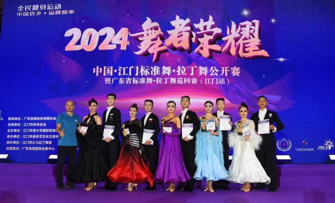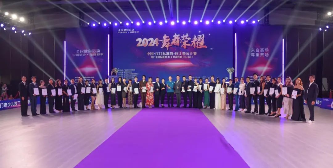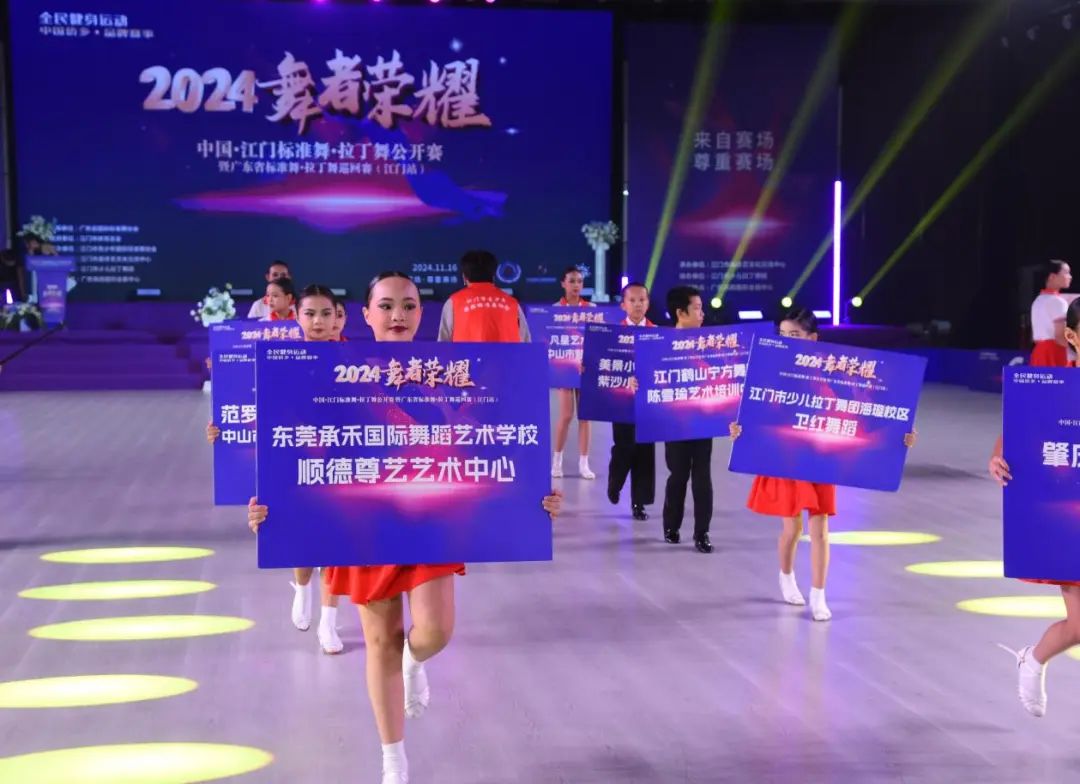 2024“舞者荣耀”中国江门标准舞•拉丁舞公开赛暨广东省标准舞•拉丁舞巡回赛于11月16日在广东珠西会展中心圆满落幕。本次大赛近千名来自全国各地的选手云集江门,进行了236个组别,2000多组次的角逐。本次大赛参赛年龄从4岁到65岁,组委会开设先河,为4岁的小舞者们设立公开业余4岁单人组,成为全国首创的年龄最小的参赛组别,受众群体的扩大,进一步体现全民健身的普及性和重要性。