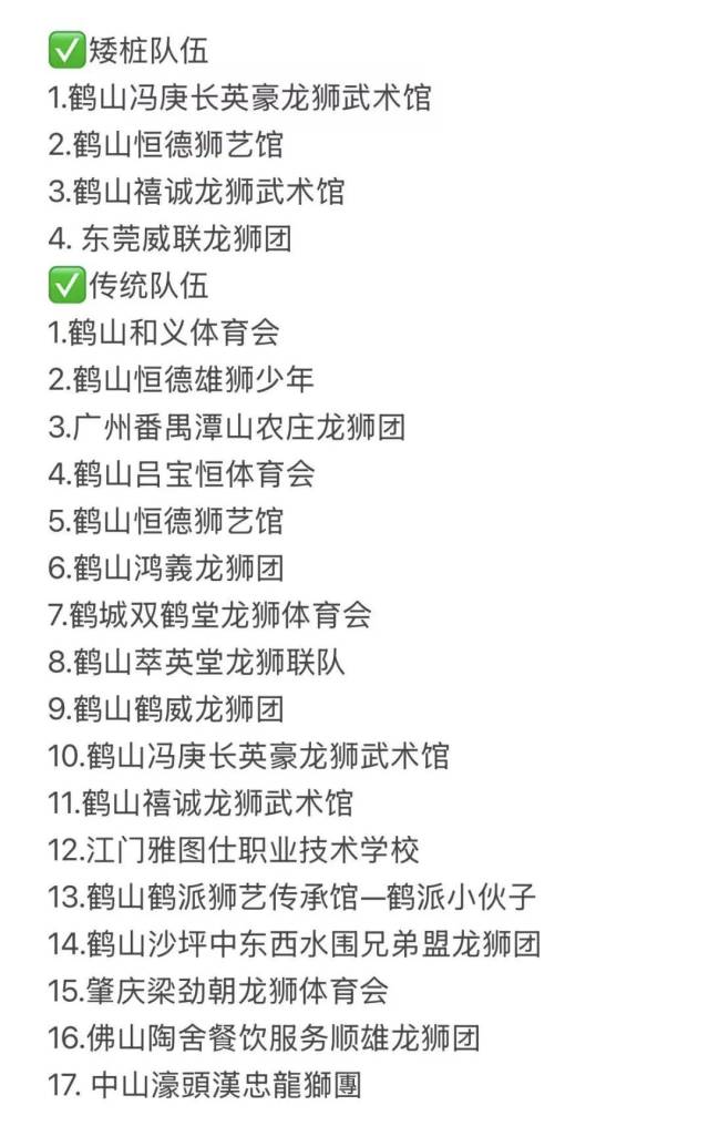 鹤山狮艺团队及大湾区部分城市代表队(排名不分先后)