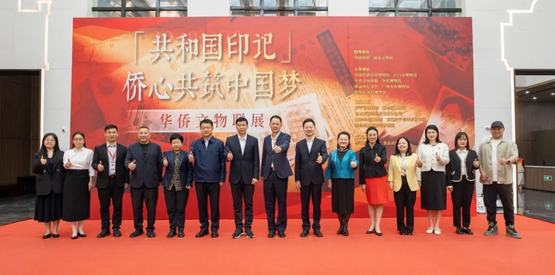 4月8日,在中国侨联和国家文物局的指导下,由中国华侨历史博物馆、江门市博物馆等七家涉侨博物馆共同主办的“共和国印记——侨心共筑中国梦”华侨文物联展在中国侨都华侨华人博物馆(以下简称“侨博馆”)开幕。广东省侨联党组书记、主席李丰,中国华侨历史博物馆副馆长(主持工作)宁一,广东省侨联副主席钟日升,江门市委常委、宣传部部长陈冀,江门市副市长夏天等领导嘉宾出席开幕式。