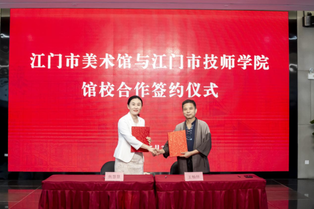 江门市美术馆与江门市技师学院举行馆校战略合作框架协议签署仪式,共同启动“场馆里的思政课”育人项目,“思政铸魂与美育润心”协同育人的崭新图景在侨乡大地徐徐展开。