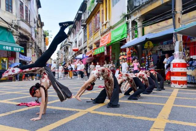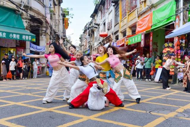 这场30分钟的“游街式”快闪,打破了传统舞台的边界,观众不再是静默的看客,而是沉浸其中的同行者。舞者近在咫尺的爆发力、老街建筑天然的纵深感,共同构成独一无二的沉浸式艺术场域,让街舞的激情与墟街的厚重碰撞出耀眼的火花。
