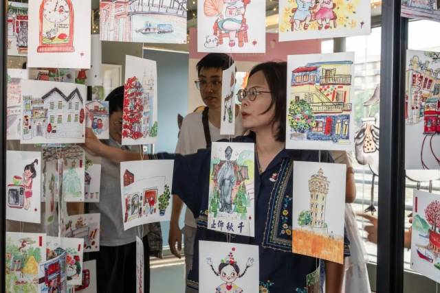 开展当日,漫画家如果果(本名李玉如)亲临展厅,以长堤街区及五号码头为灵感现场写生。她用灵动笔触即时创作,与市民游客分享创作理念:“侨乡的一砖一瓦都藏着故事,我想让画笔成为桥梁,让更多人读懂这份烟火气。” 围观者近距离感受创作过程,不时发出赞叹。