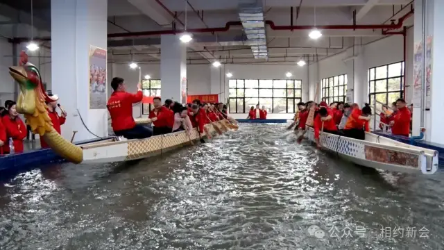 于陆上体验馆沉浸式体验一番划龙舟的乐趣。