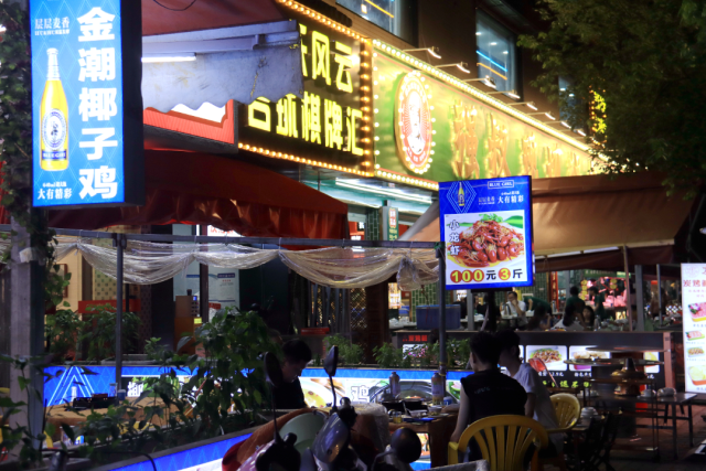在新湖路的大排档夜市里,来自五湖四海的美食齐聚一“街”。浓香鲜甜的砂锅粥、清润脆滑的椰子鸡、麻辣鲜香、爽嫩Q弹的肥肠牛蛙……热闹的夜市街把白日的烦恼洗净,就能把普通的夜点缀得有滋有味。