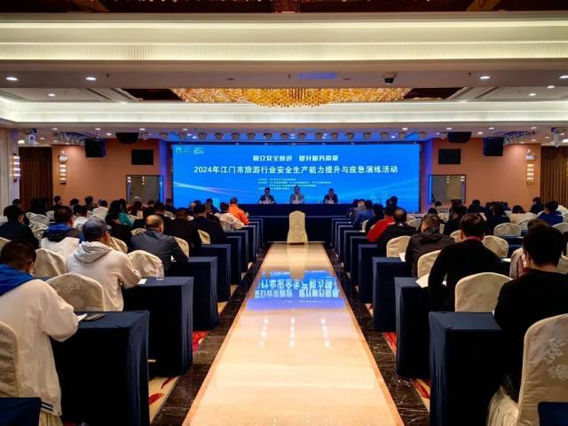 为全面履行安全生产监管职责,积极开展全市行业安全生产、消防安全治本攻坚三年行动及各项专项整治工作,加强我市旅游行业安全生产监管力度,提升全市旅游企业和旅游从业人员应急管理处置和安全生产业务水平,11月26日,江门市文化广电旅游体育局在开平潭江半岛酒店举办2024年江门市旅游行业安全生产能力提升与应急演练活动,全市文化和旅游管理部门分管领导、业务骨干及旅游经营单位相关负责人员共130人参加了本次活动。
