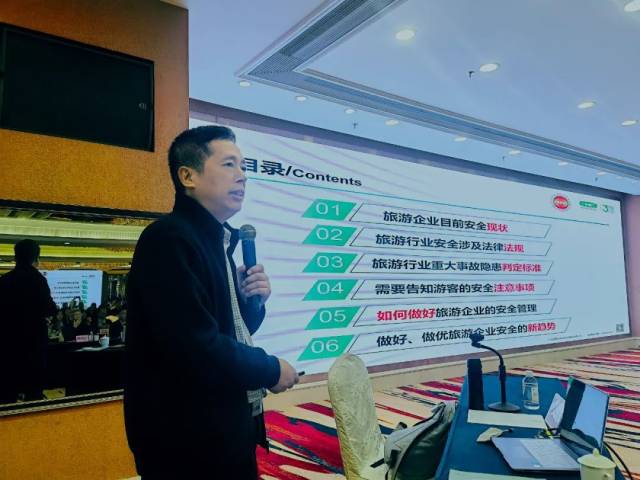 在上午的安全主题授课环节中,分别邀请江门市安全生产管理协会综合管理部部长、注册安全工程师李永金和江门市消防救援支队办公室一级助理员,大队级正职杨伟章就《如何避免旅游行业重大风险安全隐患》和《如何科学做好旅游经营场所(酒店、民宿)的消防安全工作》等专题进行授课,深入剖析一些重特大旅游安全事故案例,重点围绕防灾避险关键节点、游客聚集场所的消防与应急管理等工作展开详述。