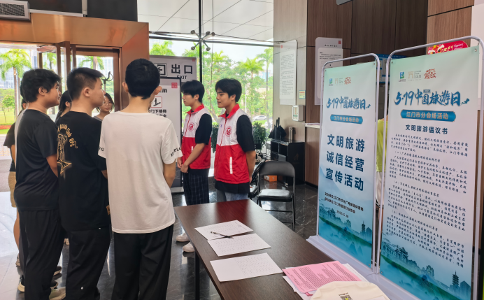 为积极推进全市文旅行业社会信用体系高质量发展,加强文旅融合,5月18日下午,籍2025年“国际博物馆日”+“5·19中国旅游日”江门市分会场主题活动举办之际,江门市文化广电旅游体育局组织业务科室干部和局属事业单位职工向本土旅游企业、市民游客等开展文明旅游和诚信宣传活动,鼓励广大游客做文明旅游的践行者,引导旅游企业做文明旅游的引导者,共同营造文明和谐、安全有序的旅游环境。