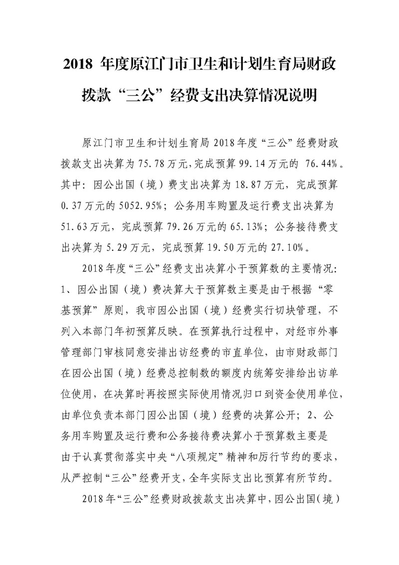 2018 年度原江门市卫生和计划育局财政拨款“三公”经费支出决算情况说明