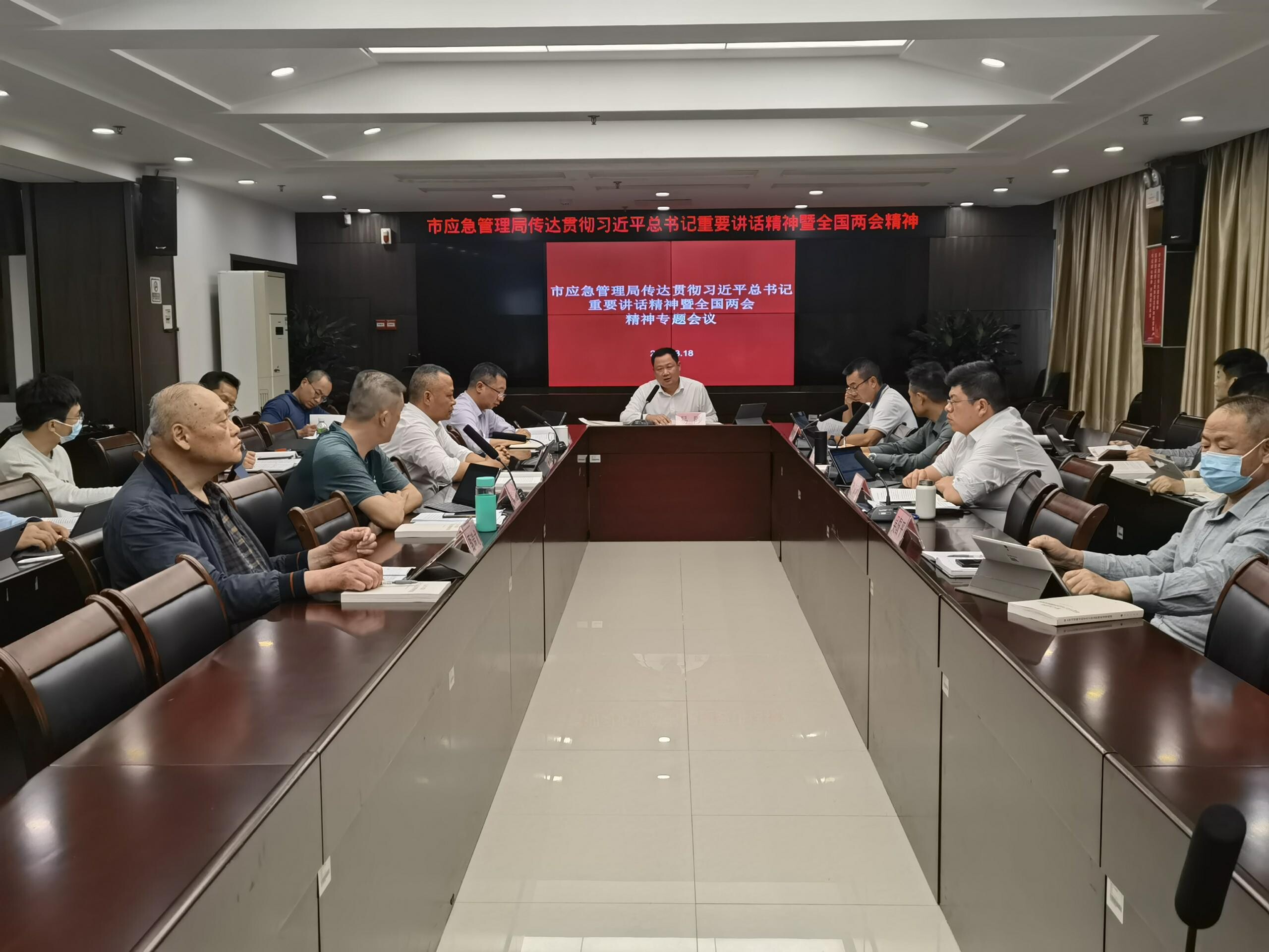 3月18日下午,市应急管理局召开党委扩大会暨党委理论学习中心组学习会,专题传达学习贯彻习近平总书记重要讲话精神和全国两会精神,研究部署贯彻落实措施。局党委书记、局长易陟主持会议并讲话。