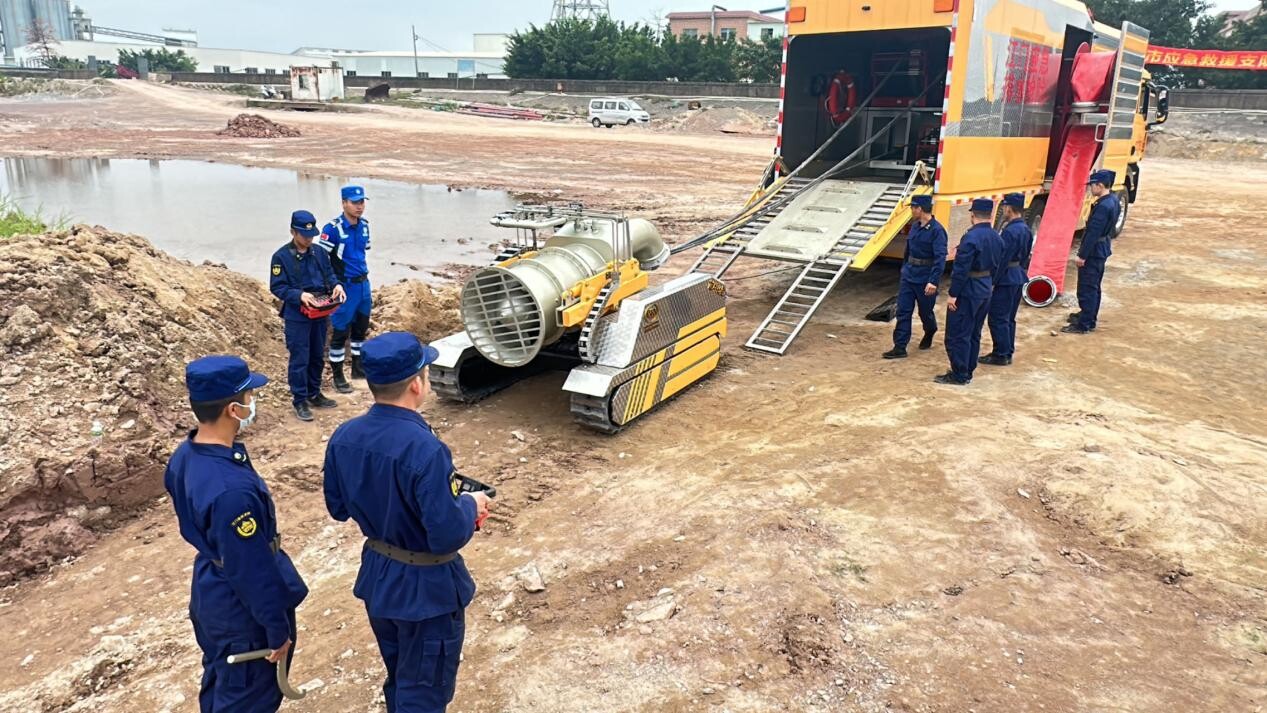 本次培训演练以紧贴实战为训练目标,通过现场理论讲解和实操训练,让每名队员都能够深入了解装备性能和实操技能,全方位参与其中。培训演练内容主要包括龙吸水排洪车、冲锋舟、橡皮艇、水上飞翼、抛投器等救援装备的组装、使用操作、维护保养和安全注意事项等。培训演练过程中,参训人员严格遵守操作规程,轮流操作救援装备,确保熟练掌握相关救援技能。最后,队伍模拟对涉水人员实施救援演练,检验训练成效。