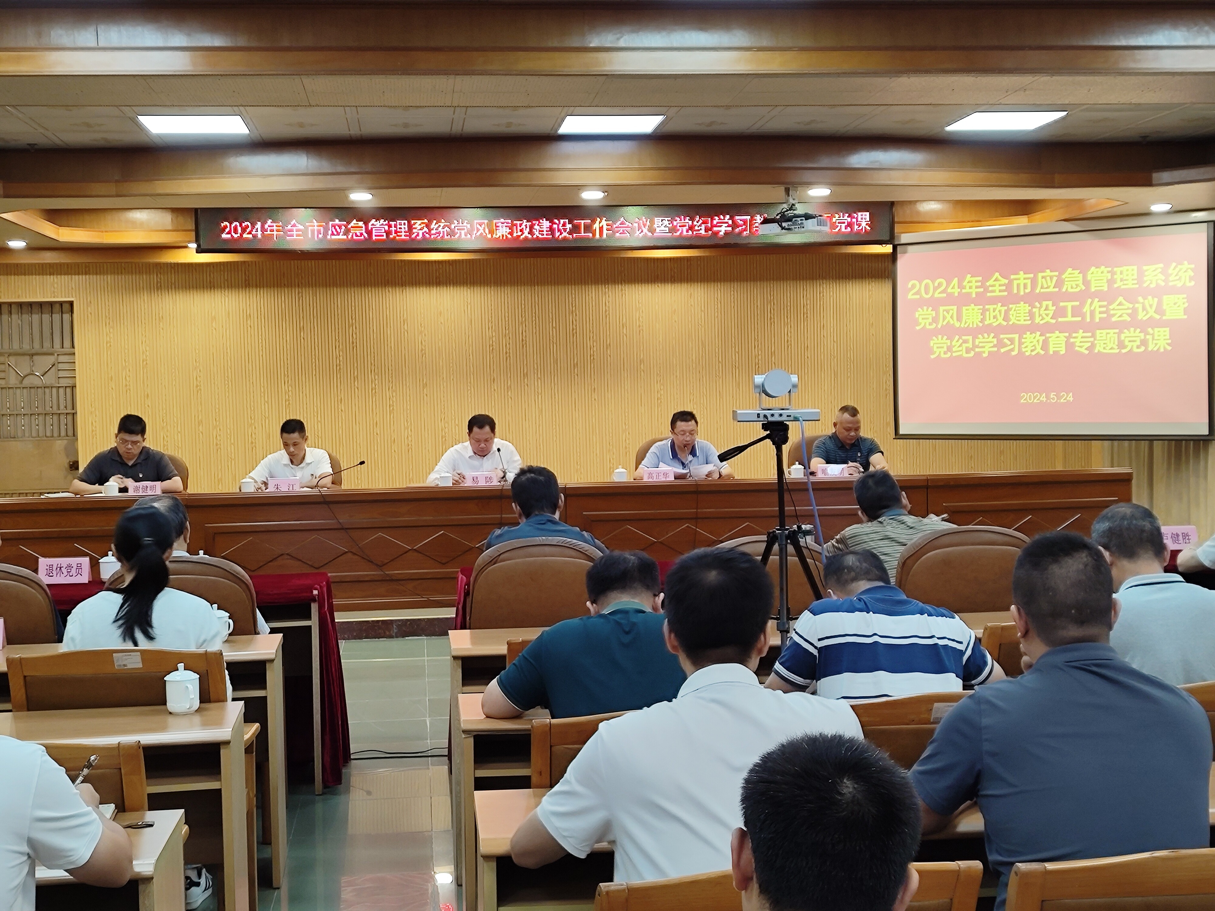 5月24日上午,市应急管理局召开2024年全市应急管理系统党风廉政建设工作会议暨党纪学习教育专题党课,深入学习贯彻习近平总书记关于党的自我革命的重要思想,深入贯彻全省应急管理系统2024年党风廉政建设工作暨警示教育会、十四届市纪委四次全会和市政府廉政工作会议精神,总结全市应急管理系统2023年全面从严治党和党风廉政建设工作,部署2024年重点工作任务。局党委书记、局长易陟讲授党纪学习教育专题党课,部署2024年全面从严治党重点工作。局党委委员、驻局纪检监察组组长朱江对全市应急管理系统全面从严治党工作面临的形势进行分析研判。局党委委员、副局长高正华主持会议。