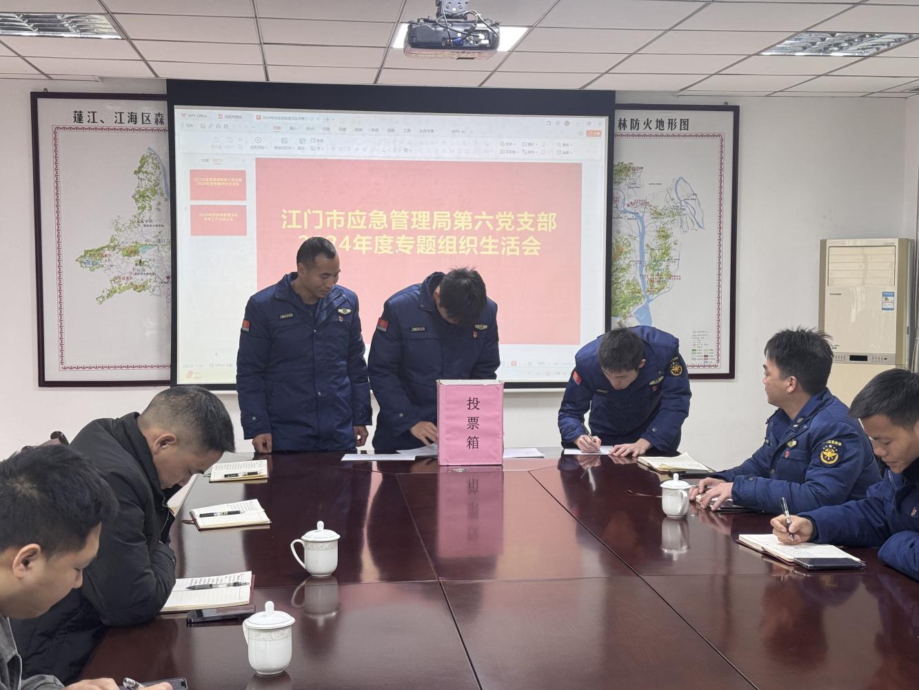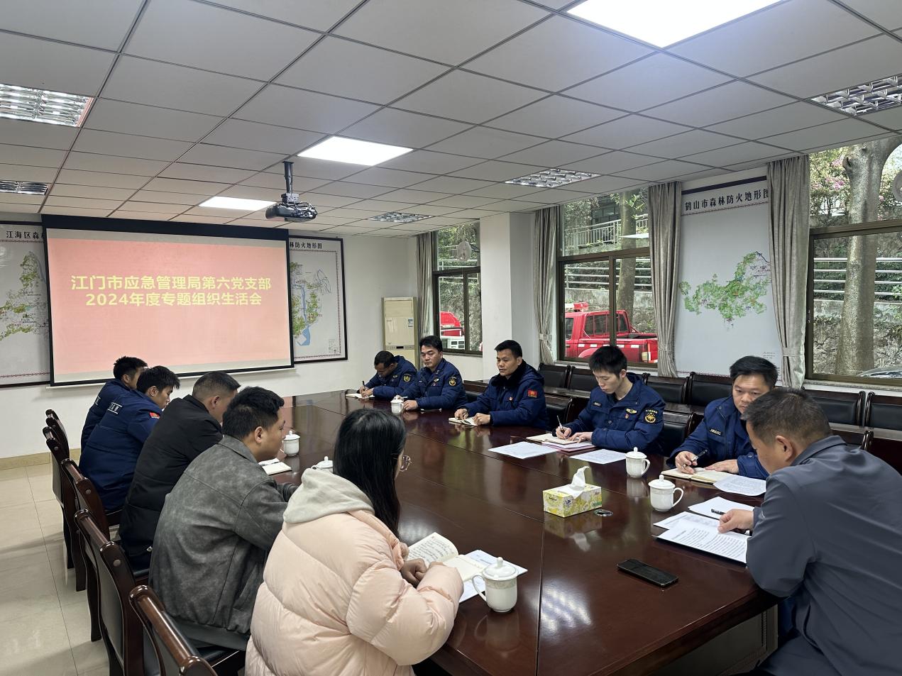为深入学习贯彻习近平新时代中国特色社会主义思想和党的二十大精神,提升支部政治功能和组织力,指出差距、改进不足,根据《江门市应急管理局基层党组织2024年度组织生活会和开展民主评议党员的实施方案》相关工作要求,2025年2月8日上午,江门市应急管理局第六党支部召开2024年度组织生活会和民主评议党员工作。