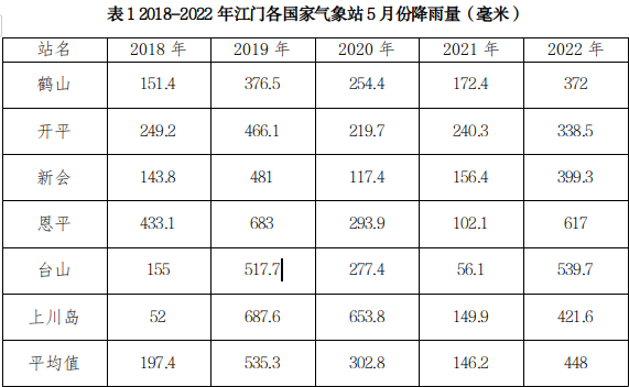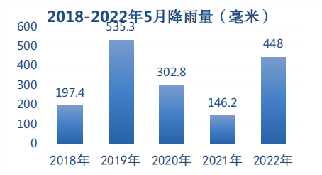 图1 2018-2022年江门5月平均降雨量(毫米)