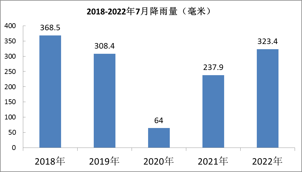 图1 2018-2022年江门7月平均降雨量(毫米)
