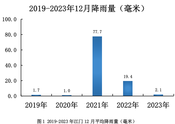 表1 2019-2023年江门各国家气象站12月份降雨量(毫米)