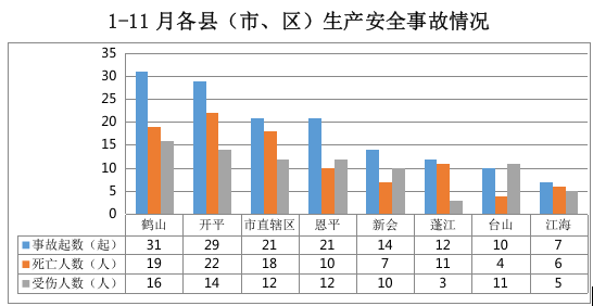 全市发生生产安全事故145起:鹤山31起,开平29起,市直辖区21起,恩平21起,新会14起,蓬江12起,台山10起,江海7起。