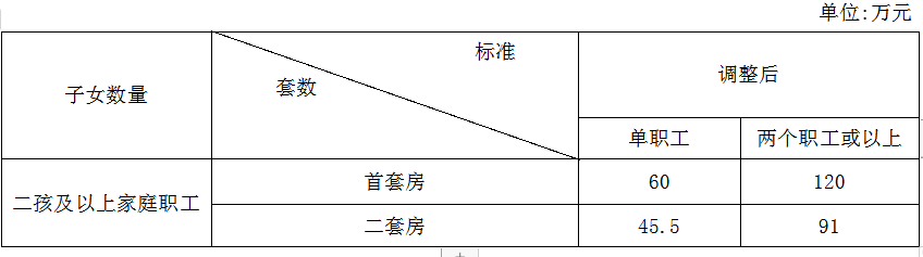 二套房:在我市购买二套自住住房的多子女家庭职工,住房公积金最高贷款额度提高到我市住房公积金最高贷款额度的1.3倍。