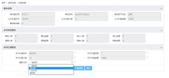 (1)登录广东政务服务网→缴存业务→汇缴申请,选择缴款方式:暂存款。
