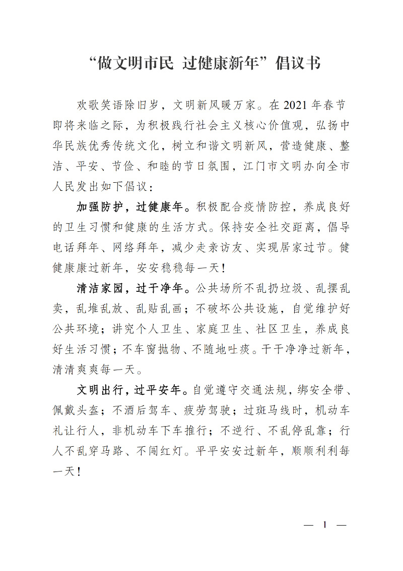 “做文明市民 过健康新年”倡议书